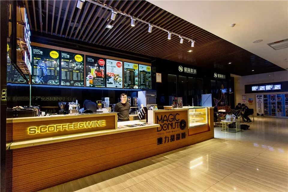 而坐落在星湖影城旁的装修是黑金风简约,清新又不失时尚格调