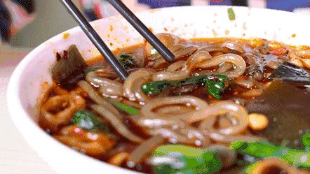透明弹滑的红薯粉条,浸在调过辣椒油和香醋的汤里,淋上喷香的肉酱,撒一小垛绿生生的葱花或香菜,辉映着麻辣酸爽的香气,叫人不住咽口水。从第一口开始,辣得头冒汗,香得吞舌头
