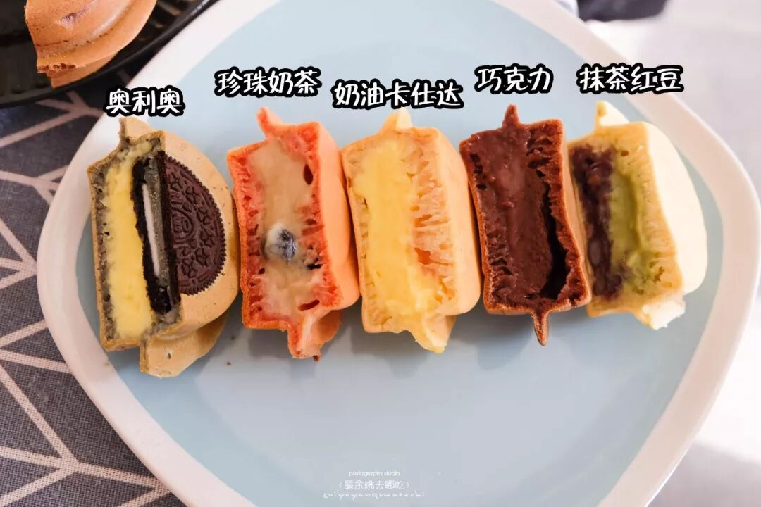 车轮饼的口味也是有很多种,每款都有各自的特色,有选择困难症的顾客可以全部点上一个就对了!
