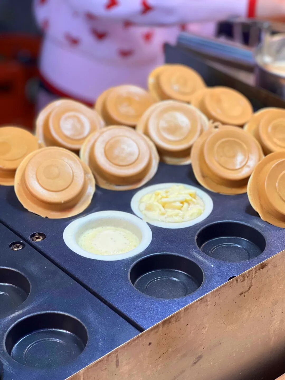 听老板娘说,生意最好的时候一天卖过3750个,足以印证它的受欢迎程度。老板娘的小摊子是夫妻档,跟着台湾师傅学的手艺,为的就是找回这曾经童年的味道