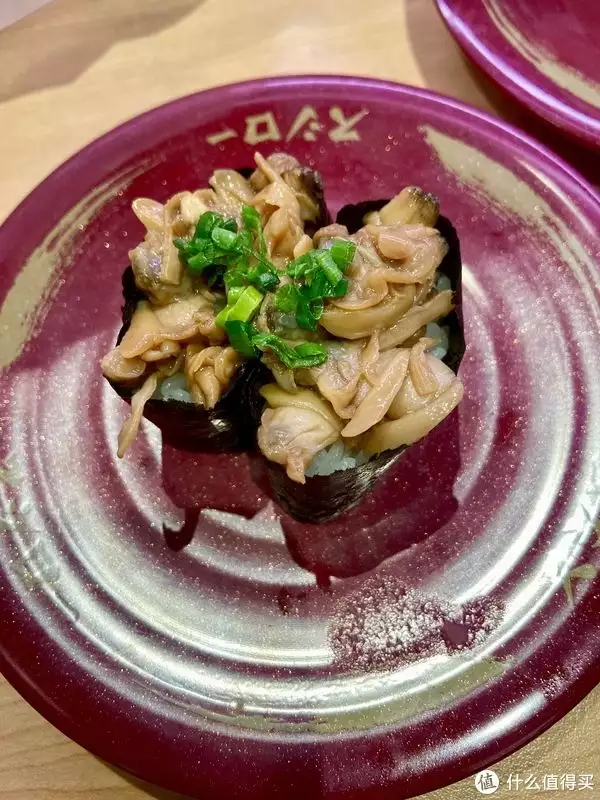 蚬肉军舰:好像是新品?腌制过的蚬肉有点甜味,我的吃法是先吃蚬肉,再用米饭蘸咸味酱油。
