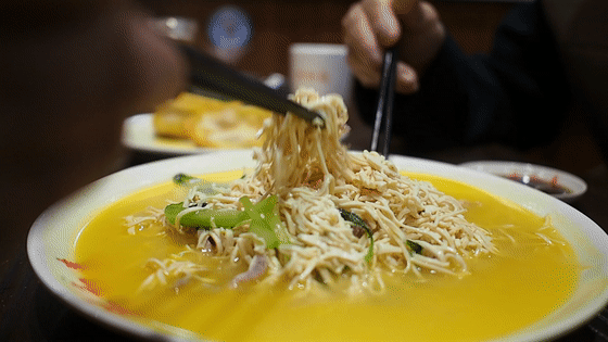 由此,一代又一代的扬州人,依然沿着祖辈、父辈习惯,隔三岔五的,赶到“共和春”尝着、品着,那韧而不烂的阳春面,那柔滑鲜嫩出水芙蓉的馄饨,那鲜的、辣的、麻的、香的虾籽面汤。仍用那外地人听不懂老食客与站锅大师傅的对话:“免青”(不放青蒜花)、“免辣”(不洒胡椒粉)、“重辣”(胡椒粉加量)、“宽汤”(面少汤多)、“半汤”(汤少面多)、“脆面”(面下锅,一滚就捞)、“双咸”(酱油重些)、“干拌”(不放汤)等行话切口。