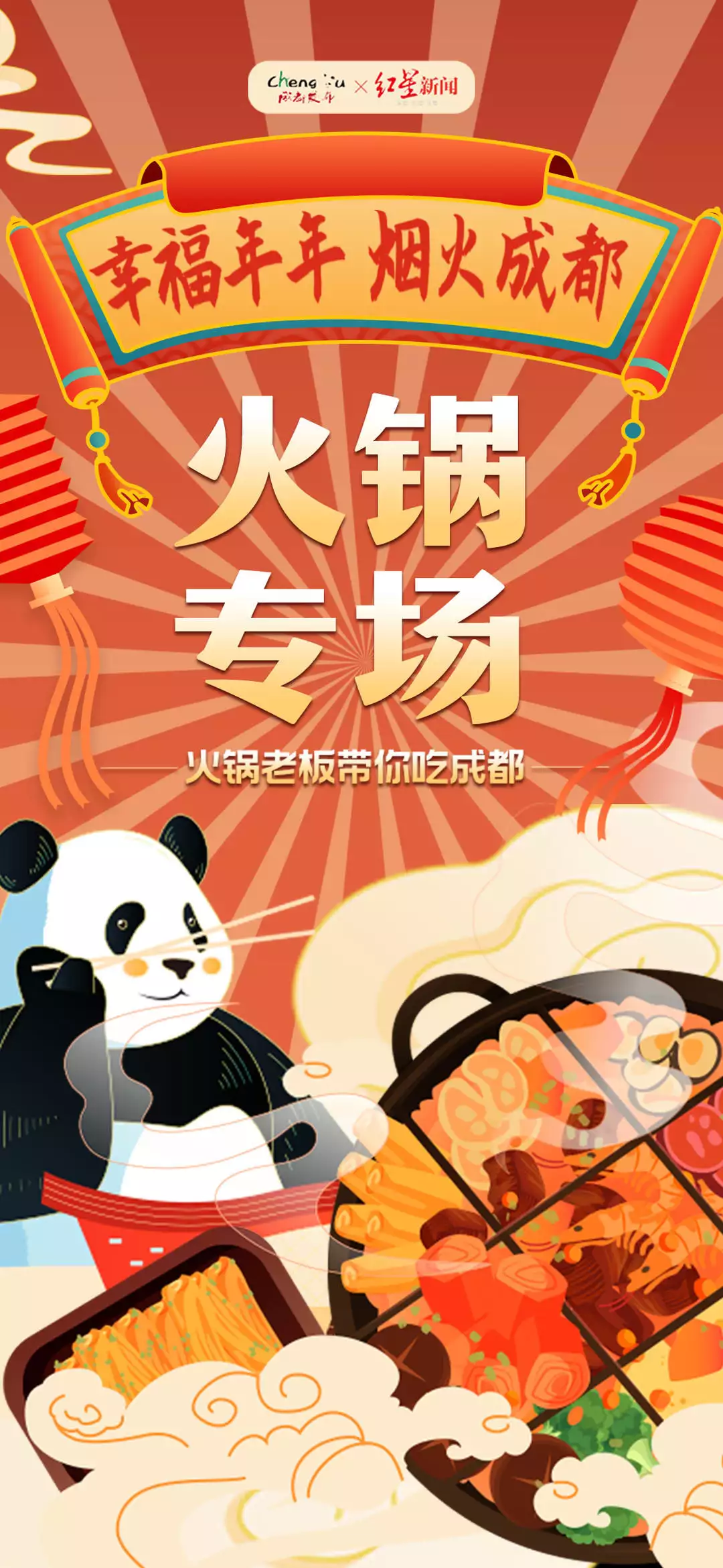 昨天冬至涮羊肉,今天就来烫火锅!这场名为“火锅老板带你吃成都”的直播,是成都发布联合红星新闻推出的“幸福年年 烟火成都”系列活动的首场直播,于今日17点开启,由红星新闻4路主播分别联合4位人气火锅老板,带消费者沉浸式打卡、品尝成都当下最当红的火锅,并当场发出超多火锅福利。