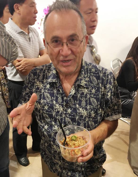 这位老先生穿越人群,手脚麻利地拦下一小盒sample,吃了一口真的是感动得颤抖,不停地念叨着 “amazing!”