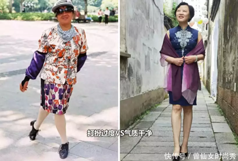 中老年群体在穿衣上其实很容易走极端,要么不打扮,面带沧桑感,不精神。而一旦打扮起来,就容易用力过猛,比如把喜欢的服饰,不管颜色,款式一股脑地搭配在一起,再挂上金银首饰,反而因色彩或设计过多显得花哨,不得体且有年龄感。