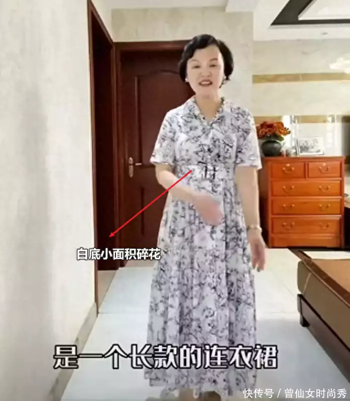 如果是成片的碎花裙,真正能够帮助中年女人去除油腻感,增加浪漫优雅氛围的还得是这种底色干净淡雅,碎花不冗杂的,像外婆这样的小骨架身材还得注意避免大碎花。