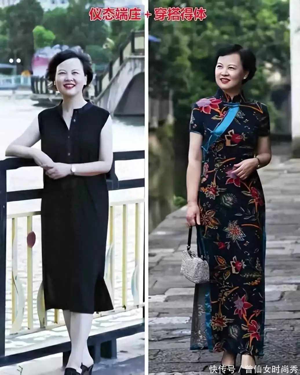 身材发福不显油腻,体态是关键,不管是站姿还是坐姿都没有弯腰驼背的现象,只见她她肩颈舒展,款款走来,更似丁香姑娘。