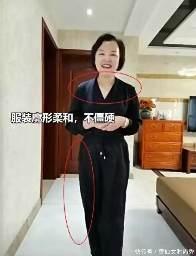 很多人说穿衣好看一定要有骨感美,身材发福的大龄女性的穿衣方向又是什么呢?还是以这位60岁外婆为例,更进一步来分析。