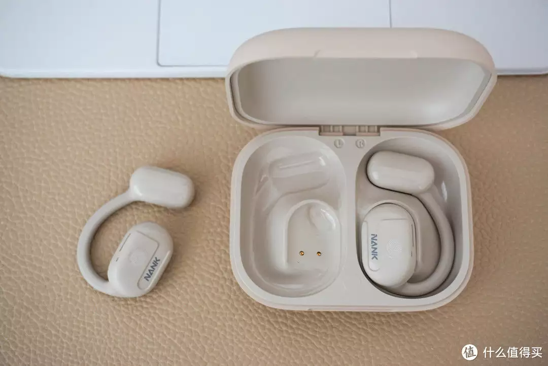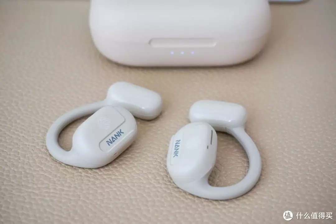 南卡NANK OE- CC绝对可以称得上是目前我所使用过的最轻便无感无压的开放式挂耳式蓝牙耳机。首先,开放式的蓝牙耳机就比入耳式耳机佩戴就更舒适,堪称开放式耳机百元级别的标杆啊。单只耳机重量仅为10克,整机重量也仅为104克,无论是外出携带还是佩戴都是绝对的轻便。