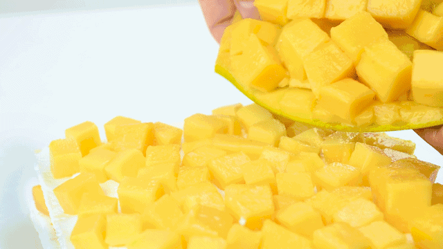 伴随着丝滑奶油包裹住清新芒果肉