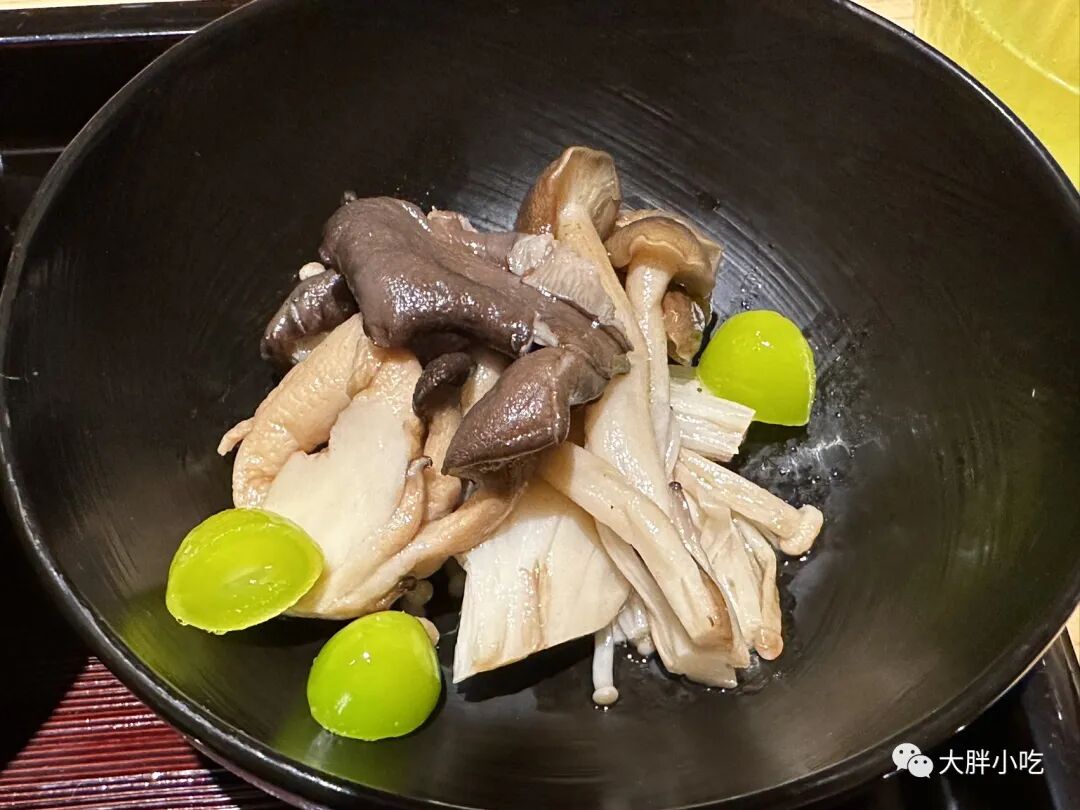 右上角一碟是涼拌菌菇,味道調製得很清新。