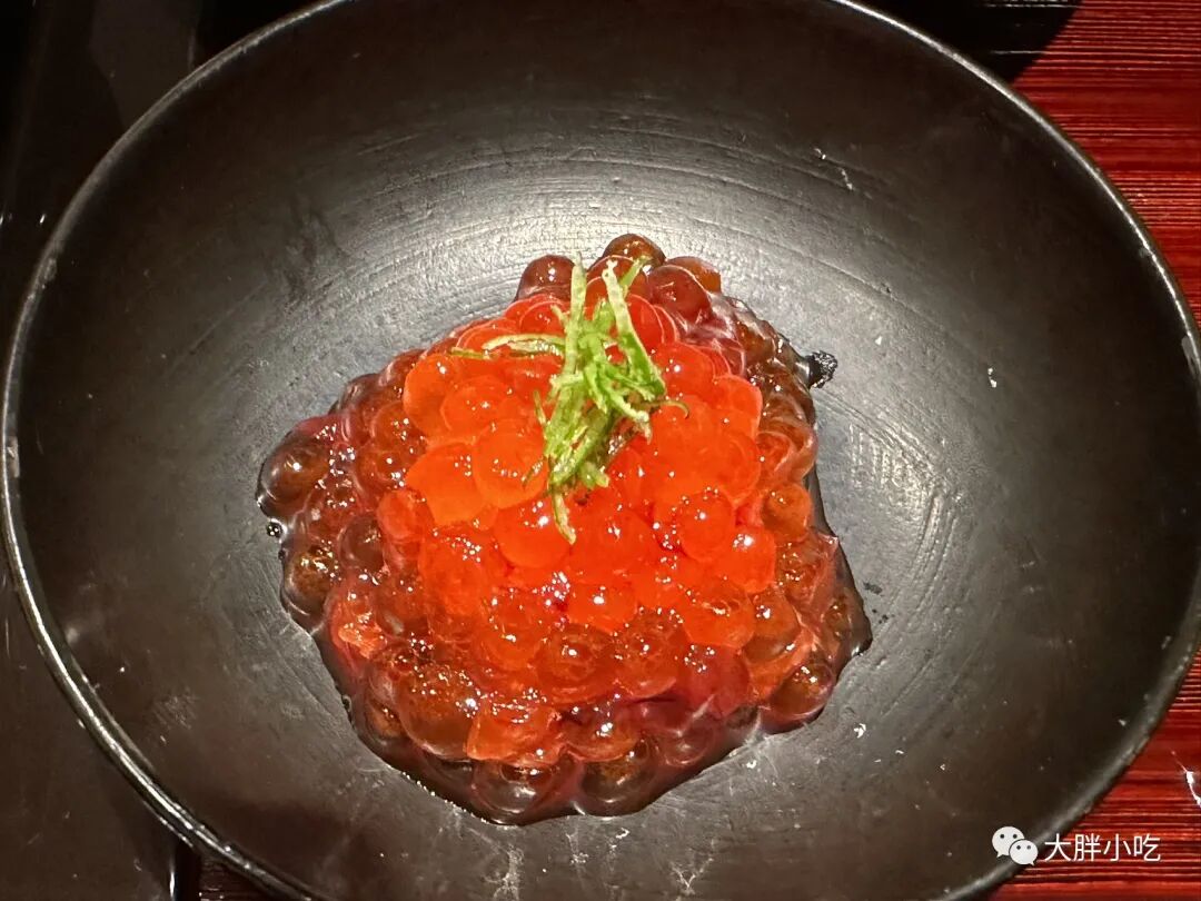 中排左邊是鮭魚子,地下有蘿蔔泥。魚子並沒有很咸,伴著蘿蔔泥,可以直接吃。