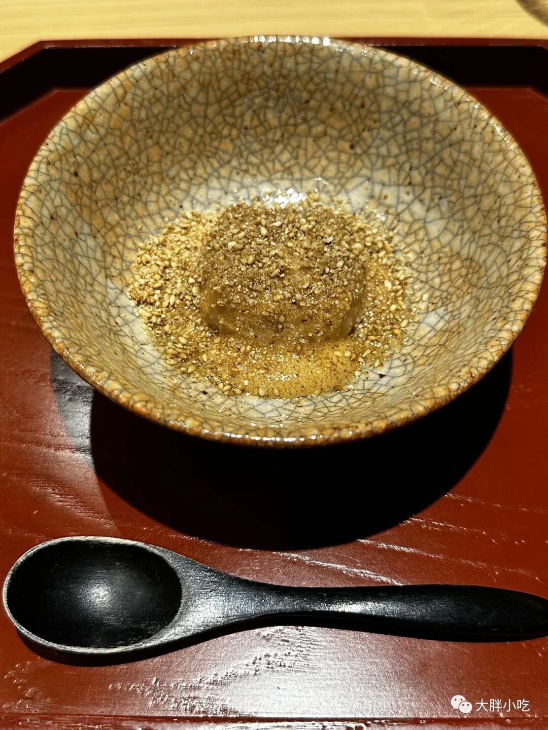 開胃菜是白芝麻豆腐,豆腐是溫的,入口柔嫩,豆香在芝麻香的強力烘托下,一點也不遜色。