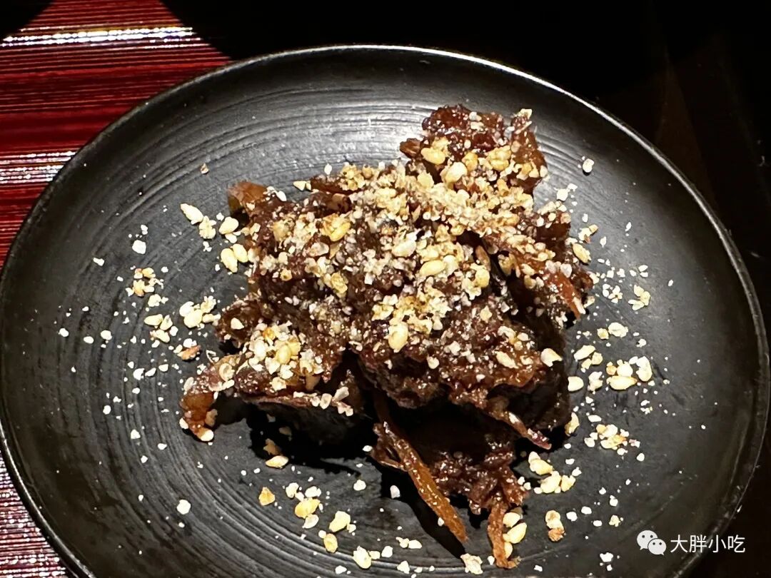 右邊是牛肉幹。調味非常出色,鹹甜香衝擊著味蕾,難得吃到這麼好吃的牛肉乾。想必牛肉原料也是極好的。