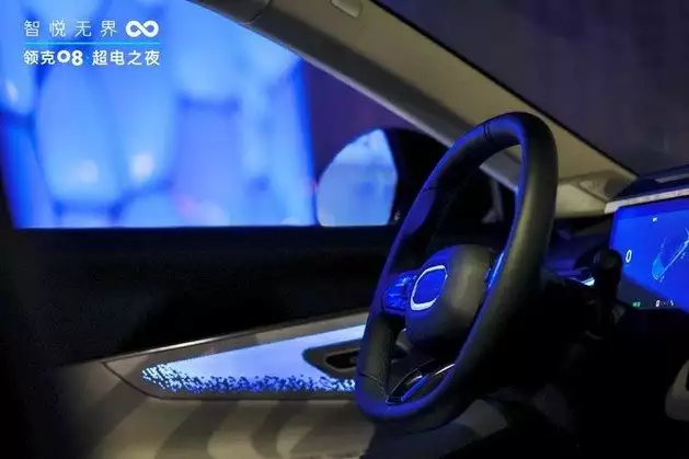 当然,车内才是领克08更需要重点关注的部分,简约的仪表台颇具层次感,第一眼看上去就很清爽。整车很多地方都是由环保材料制作,彰显人文关怀。例如座椅,中控台,门板等重要位置选用可回收、可再生的聚酯材料——仿麂皮,可回收聚酯比例达45%。地毯采用了97%的可回收材质,顶棚织物选用可回收料比例更达到了100%。更加环保的PVD工艺来代替传统污染很大的电镀工艺。
