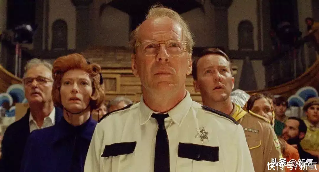 《月升王国》2012 | 比尔·默瑞、蒂尔达·斯文顿、布鲁斯·威利斯、爱德华·诺顿组成的顶级酱油团队,与平时主角人设相差甚远