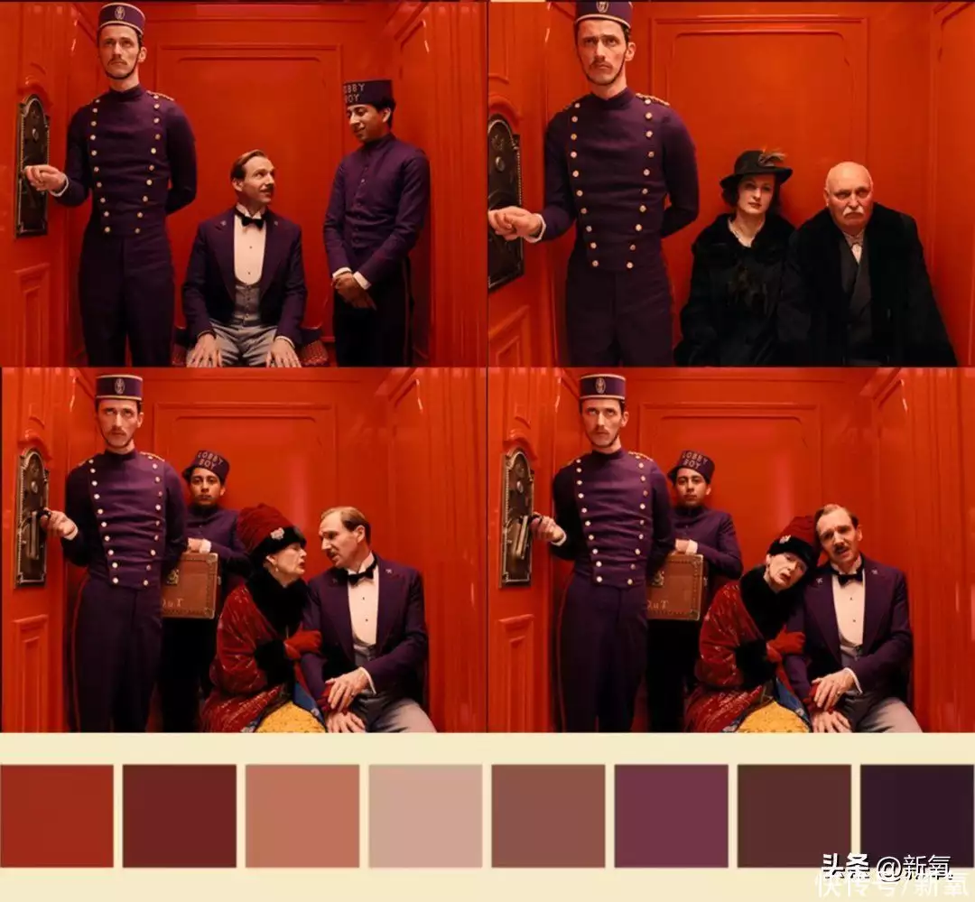 到了让Wes彻底名声大噪的《布达佩斯大饭店》,不仅保留了我们习惯的对称美+神经质喜感,还在色彩选择上有所突破,让粉紫成为Wes的代表配色。