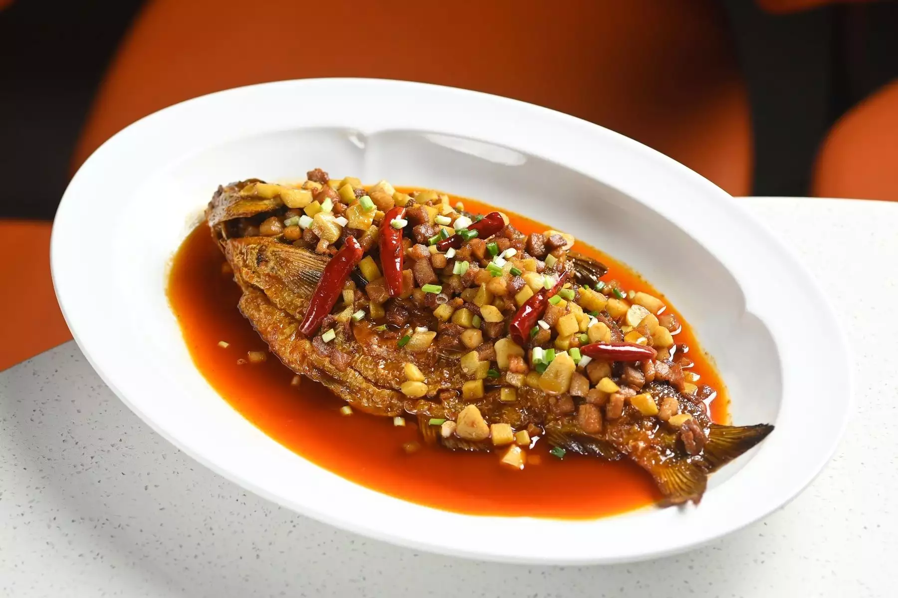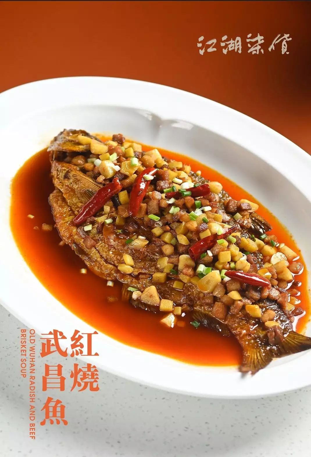 武汉必推荐,才饮长江水又食武昌鱼,武昌鱼是湖北人过年饭桌上必不可少的美味佳肴。本菜选用黑背有机武昌鱼,通体黑亮,身形扁平,肉质细嫩。