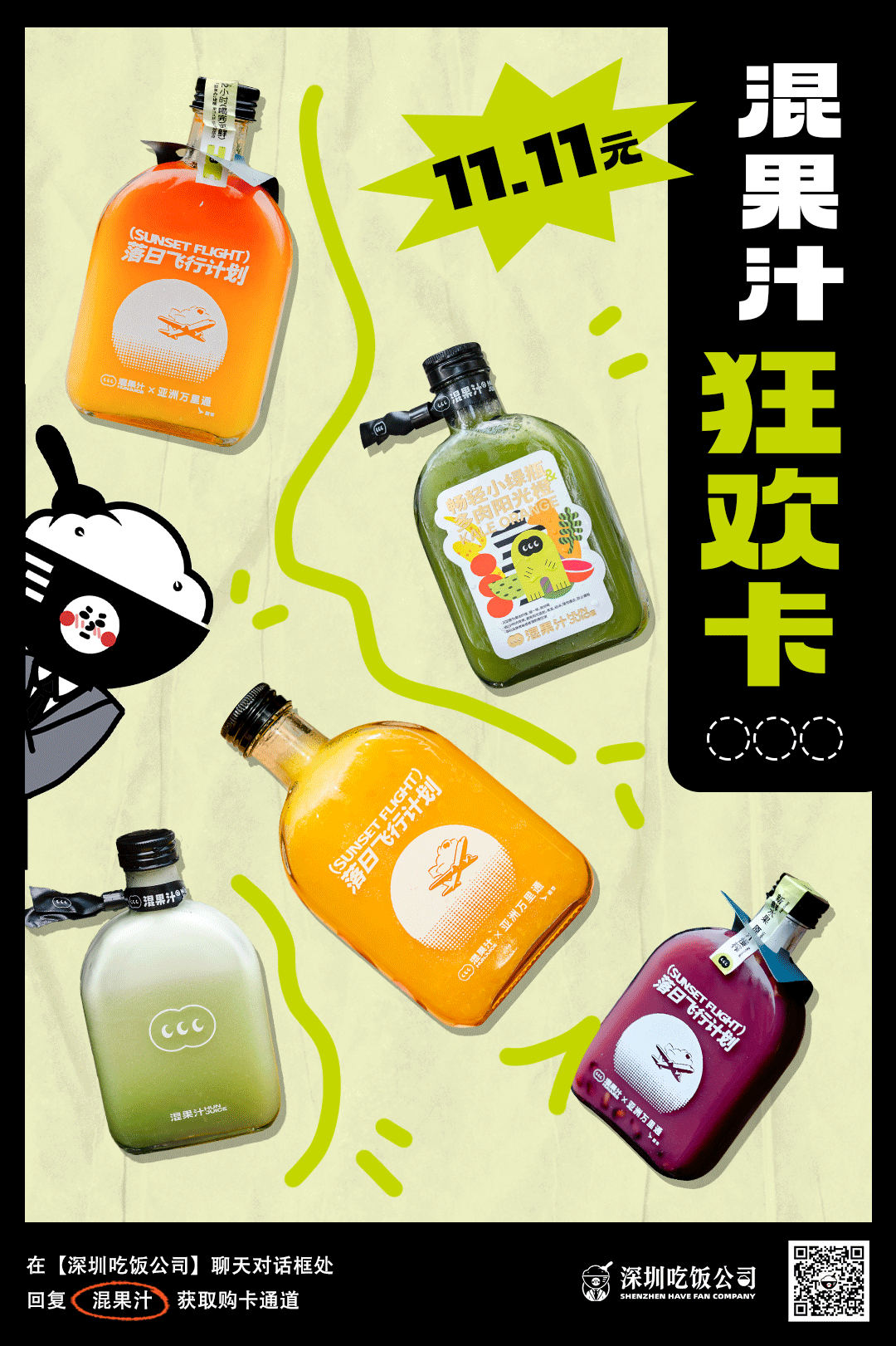 喜欢喝果汁的小伙伴看过来了喂!深圳人都眼熟的果汁品牌「混果汁」最近推出了「狂欢卡」,只要花上11.11元,接下来的2个月,大喇喇60天,每天都能19.9元喝混果汁。随意买上1单29元的果汁,就回本了,这不是稳赚不赔的买卖是什么?