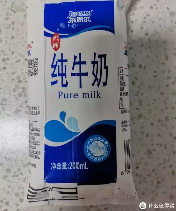 来思尔也是来自云南大理的高山牧场,和欧亚的大理风景牧场牛奶一样,两千多海拔,拥有苍山洱海的大理气候温润、光照时间长,牛奶口感香醇丝滑,不过在香味上比欧亚弱一点点。但自带一丝清甜,它的蛋白质含量8.3g,乳脂肪含量8.8g,钙含量250mg,是不是感觉各种含量都很高很高,这里它有一个小心思,就是其他的牛奶成分表都是按每100g来算,它是按每盒(256g)来算,但其实换算一下就知道了,还是很高。而且价格便宜,是性价比最高的一款牛奶。