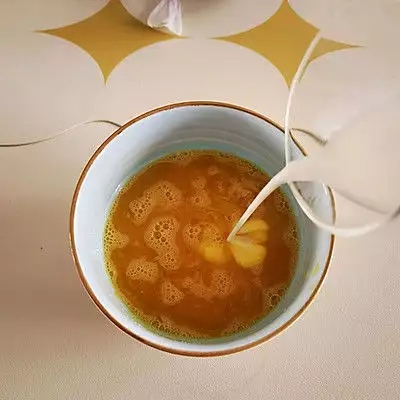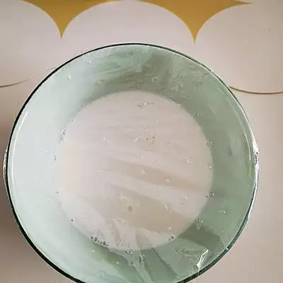 6、静置的时间里,我们来折腾拉丝麻薯。 糯米粉90克+玉米淀粉15克 白糖15克+牛奶200毫升(牛奶要慢慢倒入哦,不同品牌吸水率不同,所以我的牛奶一般是在180~200毫升之间波动)。 上述材料全部混合均匀过筛。