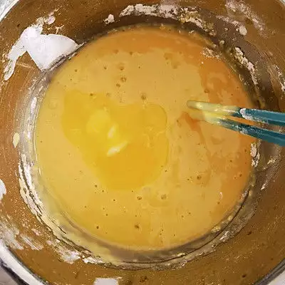 5、加入融化的黄油,再次搅拌均匀并静置15分钟。