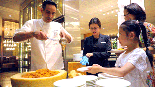 Francesco还单独制作了四道颇受欢迎的意式料理,有蘑菇烩饭、藏红花烩饭配小牛膝、意式菠菜千层饼、意大利炸海鲜。