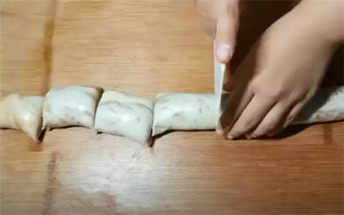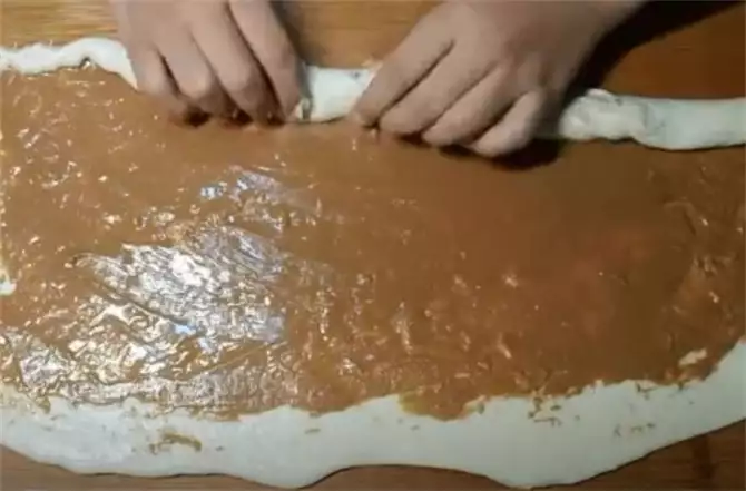 6.然后由底部从外向里卷起来,下大小均匀的面剂。