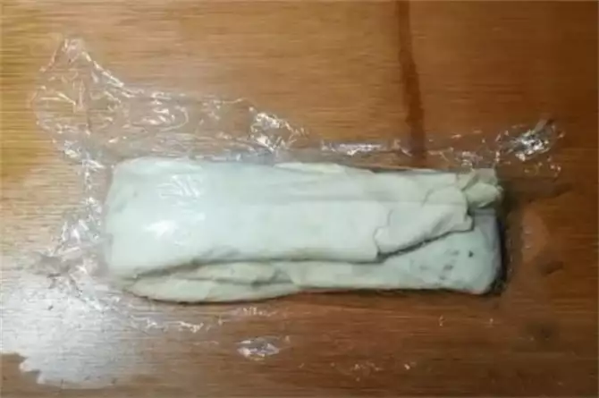 4.卷好之后两端对折,二次饧发10分钟,经过二次饧发的面会更容易擀开,延展性会更好。