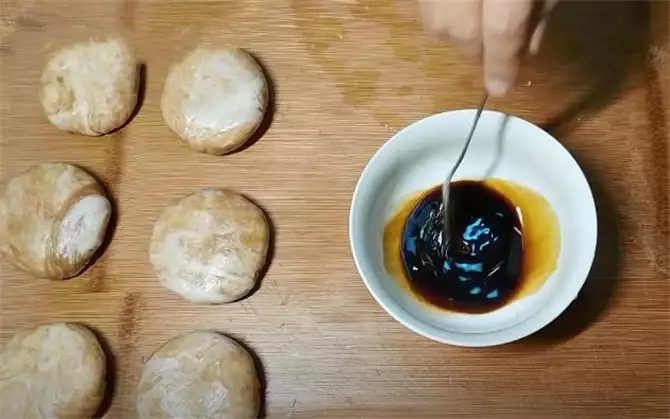 8.给大家分享一个沾芝麻不掉的小诀窍,准备3g清水,3g老抽,3g蜂蜜,搅拌均匀。