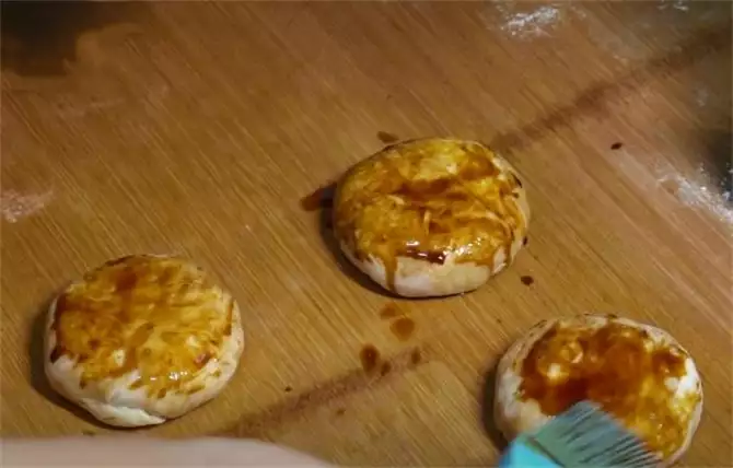 9.每一个生胚上面都刷上一层调好的水,加了老抽的缘故,一会儿沾芝麻的时候会不易掉,而且最后做出来的成品也好看。