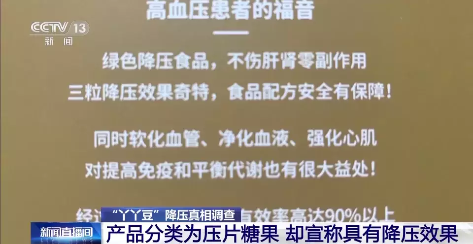 浙江省嘉兴市市场监管行政执法队副队长 陈从容:压片糖果实际上就是一种普通的食品,那么普通食品是不能宣传治疗功效的,但是这个产品不仅宣传了治疗功效,同时大量的顾客反映,只需要吃半片,是有降血压的效果。