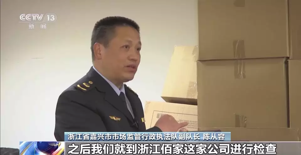 浙江省嘉兴市市场监管行政执法队副队长 陈从容:这个产品是嘉兴的浙江佰家生物科技有限公司,委托江苏淮安泽熙顺隆生物科技(江苏)有限公司的企业生产的,之后我们就到浙江佰家这家公司进行检查,检查当天查获了大量的宣传彩页。