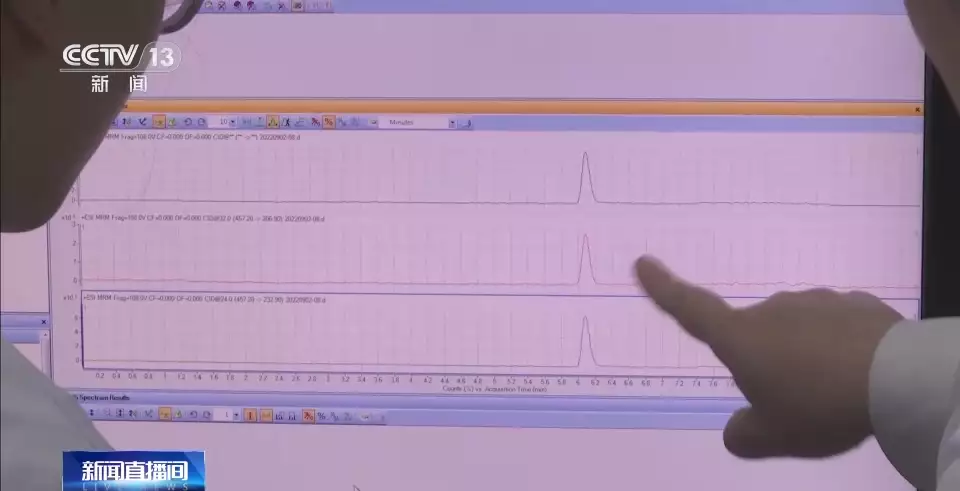 浙江省嘉兴市食药质检院化药室主任 欧贝丽:我们院原先就有降压药的检测方法,是22种化合物。我们比对了22种化合物,这个样品可以看到机械非常干净,在22个通道内都没有出现色谱峰,它都没有添加我们已知的降压药物。
