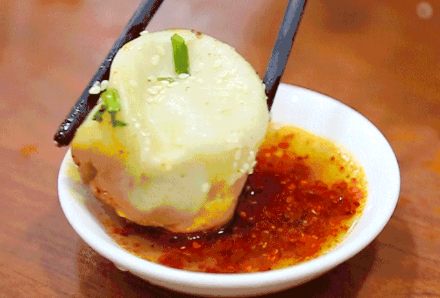 第一步:顶部啄一小口,汁水倒入勺内,品!