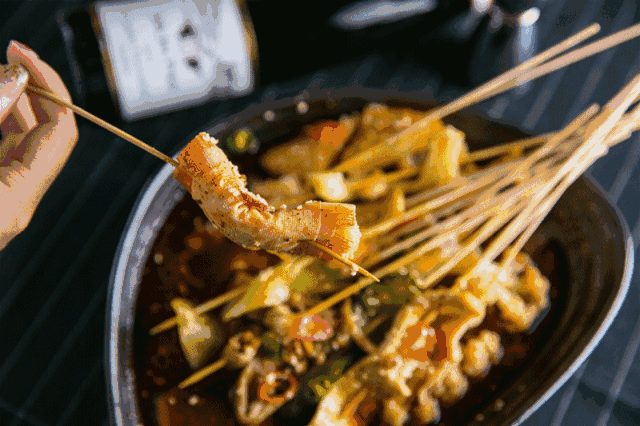 如今,走在乌达区的大街小巷,随处可见大大小小的串串店铺,红漆的矮方桌、小凳子和热气腾腾的一锅红汤以及那一大把的竹签,把荤的、素的往竹签上一穿,就构成了特别的一景。