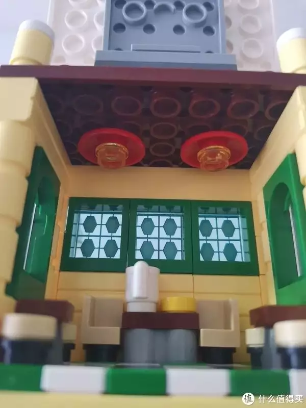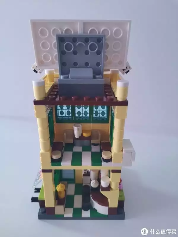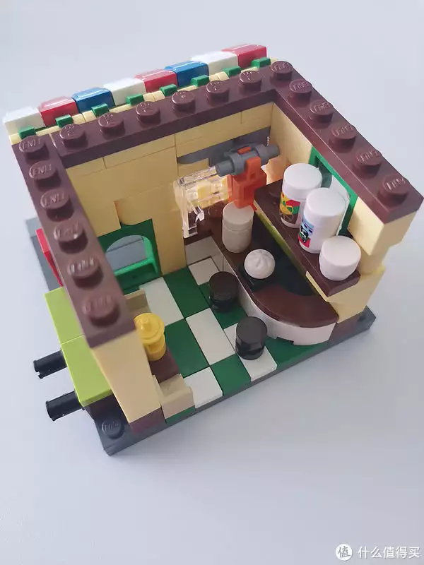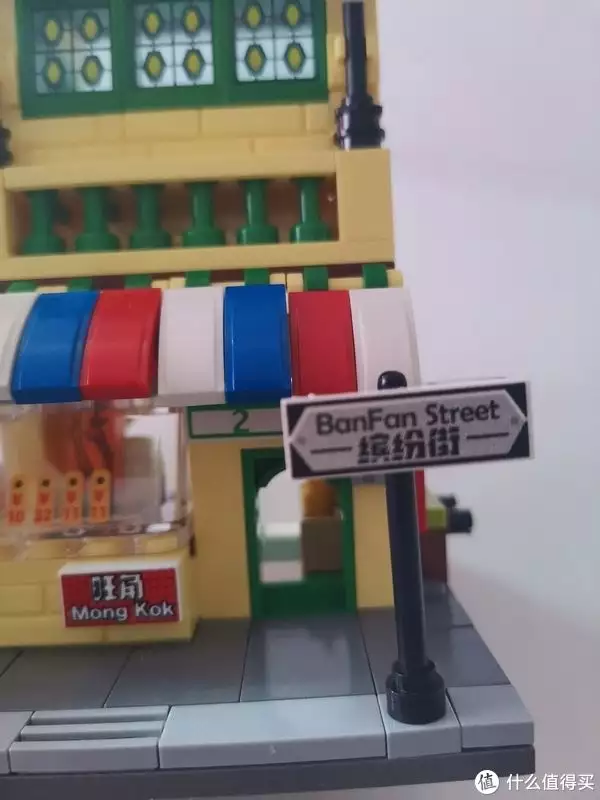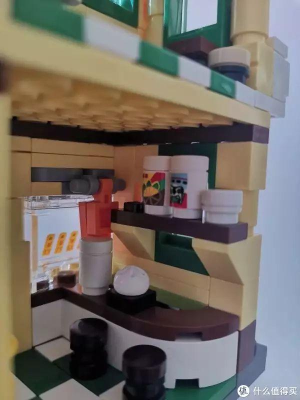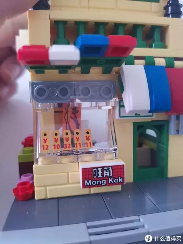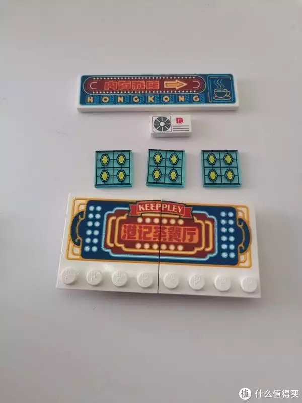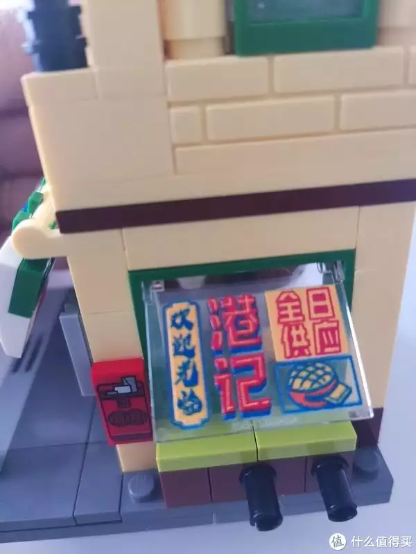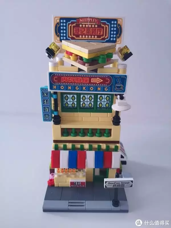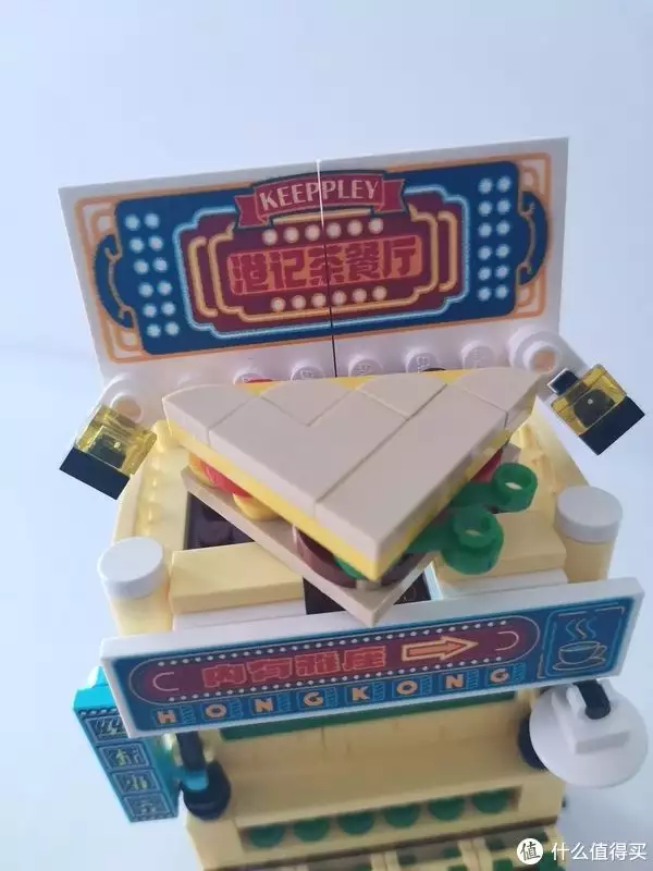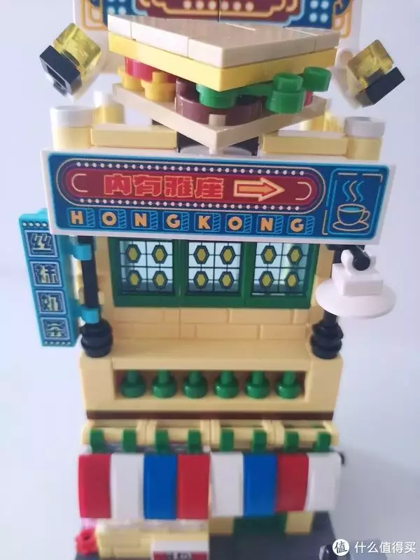 这款产品拼搭完成后,正面展示非常丰富,顶部是大大的港记茶餐厅招牌,带有两个射灯,整体来看就一个“炫酷”!