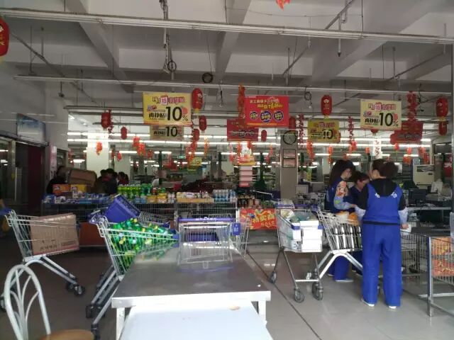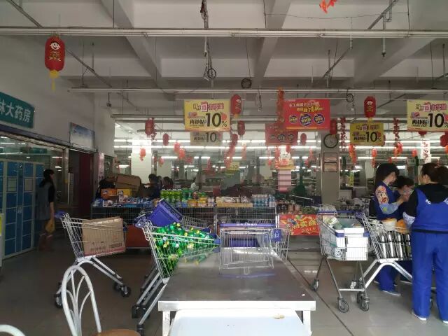 小马君路过农工商超市特地去看了一下,超市里面的商品还没有售完。超市工作人员正在整理货物。