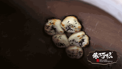 朱阿根把揉好的面团内放入各种馅,有猪肉、牛肉、梅干菜、荠菜、萝卜丝等,包好之后在案板上轻轻一压,一个饼状的面团做好了,再撒些芝麻放进定制的烤炉中,几分钟后,外表金黄的小烧饼被拿出烤炉,送到客人的餐桌上。