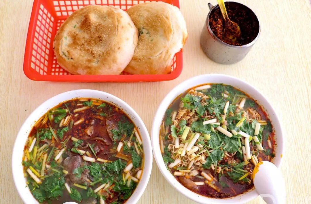 我要了一碗,加方便面的再配上店里的特色主食—葱花烧饼真的算是“豪华版不说了,我要开吃了!