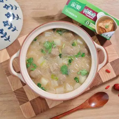 秋天,气温一天天的降了下来了~ 这时候最适合来一碗热乎乎的,营养美味的汤,给身体补充能量. 提到秋季进补,许多人肯定想到吃牛肉,鱼肉,其实牛肉还可以换成牛肉丸子,搭配白萝卜和粉丝煮一锅,粉丝Q弹,白萝卜清甜软烂,咬一口还会爆汁的牛肉丸,搭配在太好吃啦!喝一口汤都要鲜掉眉毛了,做法也非常简单. 想要汤鲜味美我有小妙招,只需加入一颗全新升级上市,0防腐剂,0甜味剂,0添加的“家乐牛肉浓汤口味浓汤宝”,做出来的汤比饭店还要好喝~ 家乐浓汤宝原料甄选自慢熬安格斯牛油和牛骨浓汤,汤真鲜,牛肉肉味浓郁。每颗浓汤宝中含有蛋白质1.8g,一次一颗使用起来超方便哦。 春季要多喝汤,常给家人喝这汤,简单煮上一锅,汤鲜味美营也养高,快点做起来吧~