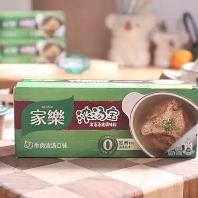 6、家乐牛肉浓汤口味浓汤宝,原料甄选自慢熬安格斯牛油和牛骨浓汤,汤真鲜,牛肉肉味浓郁.