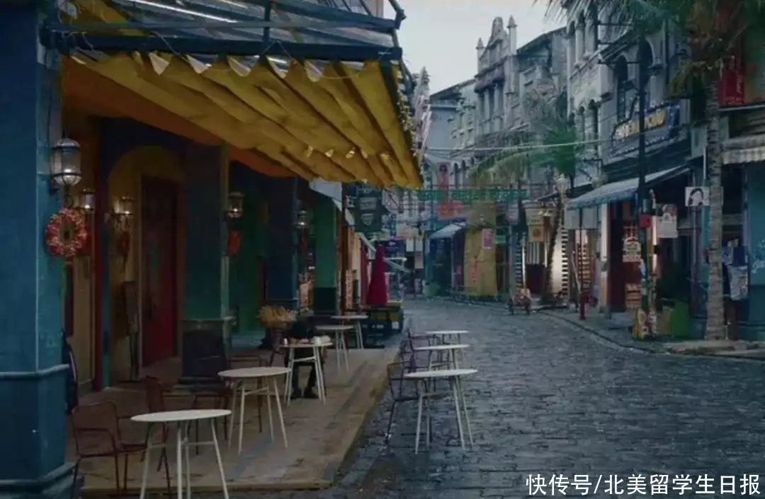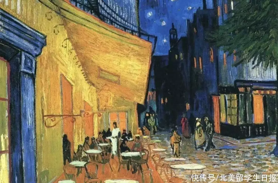 何非与陈麦碰头的咖啡馆外景,复刻了《夜间的露天咖啡座》。