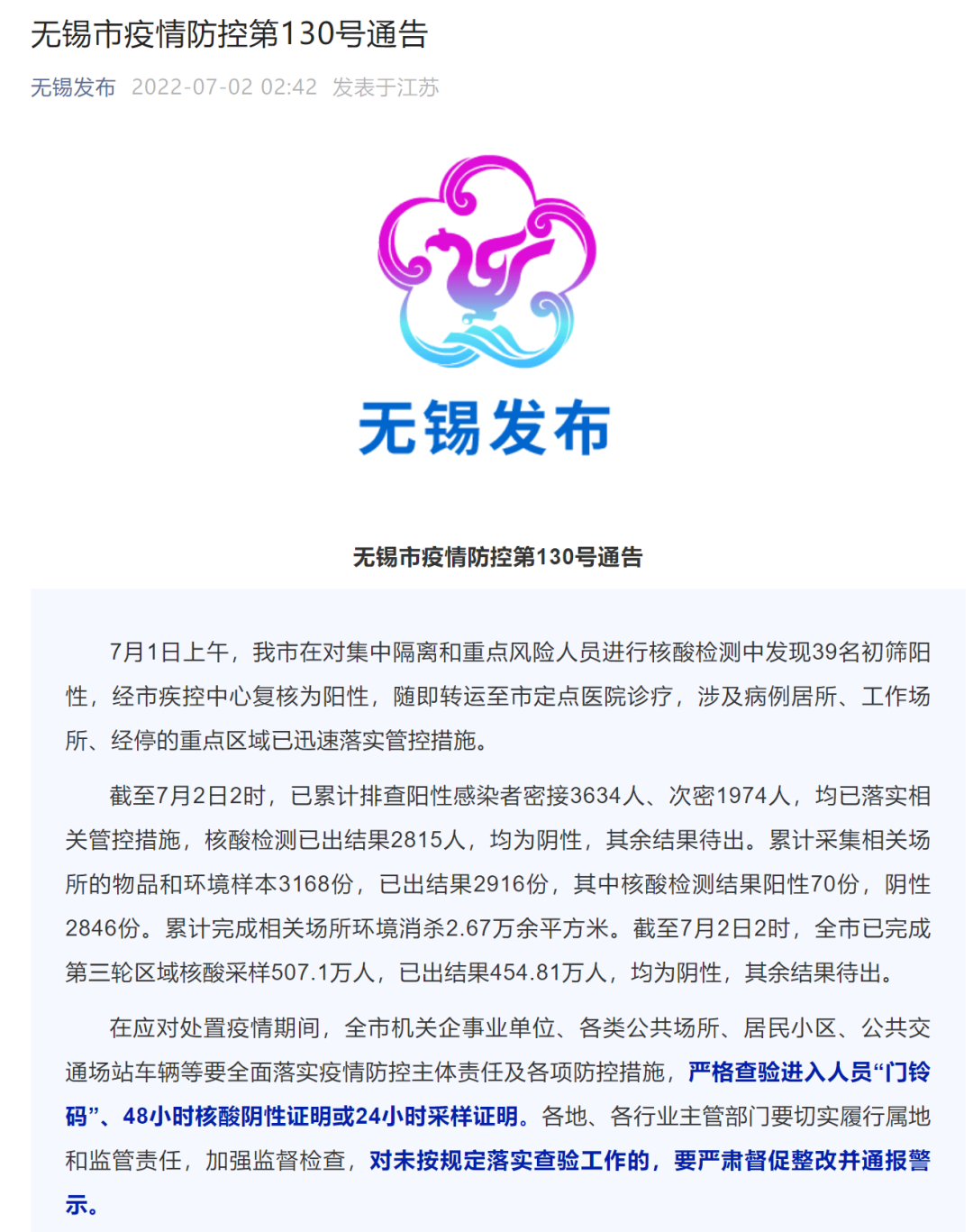 无锡深夜通报:发现39名阳性感染者