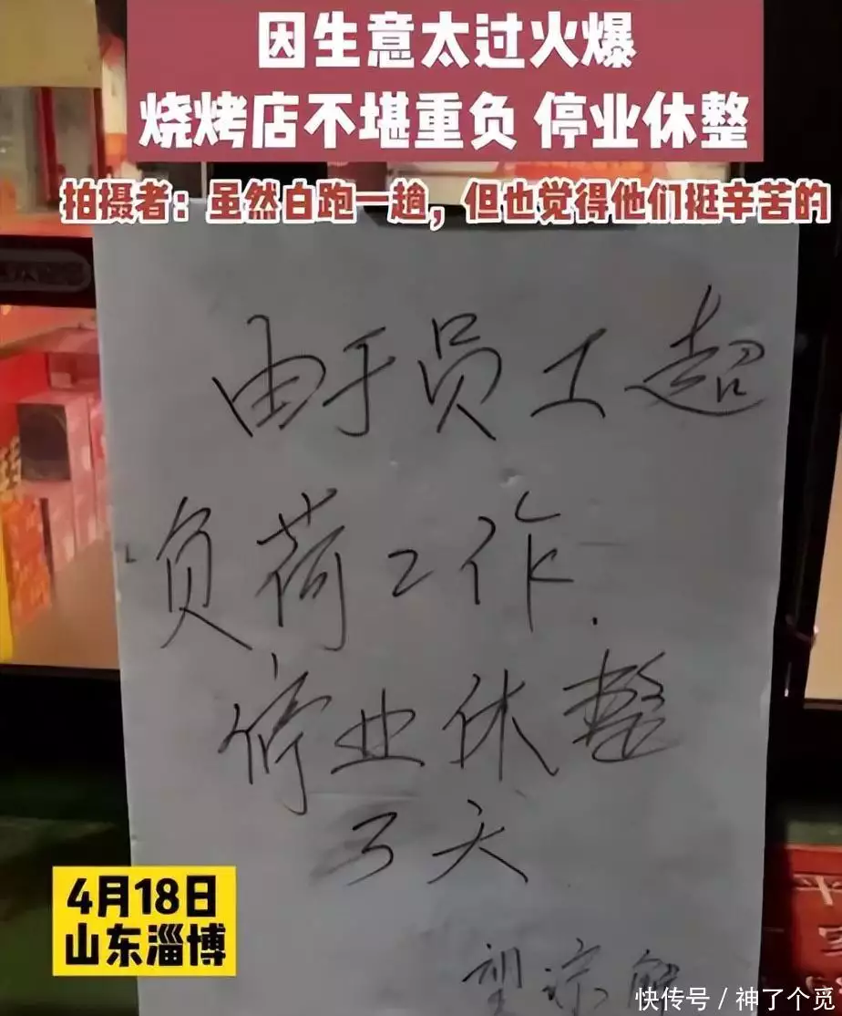 淄博烧烤这波热度久居不下,很多商家表示“想关门休息几天”、“身体扛不住了”、“害怕有命赚钱,没命花钱”等;