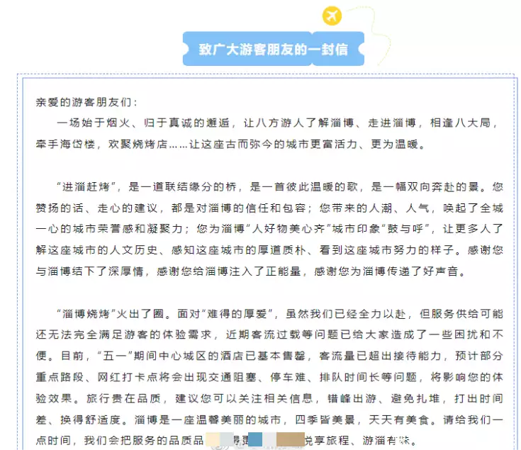 面对这种情况,五一期间,淄博政府不得不发出公告: