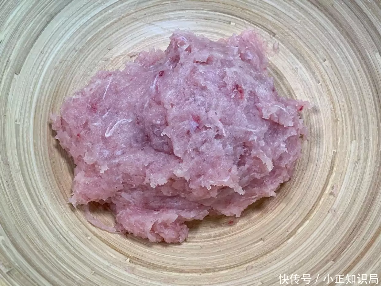 步骤一:首先把鮸鱼鳞刮干净,头和内脏也去除干净,用刀从鱼骨中间把鱼肉片出,把鱼刺拔干净,把鱼片去除,然后把鱼肉剁碎(鱼汤和鱼骨也可以炖豆腐汤或红烧都可以)。
