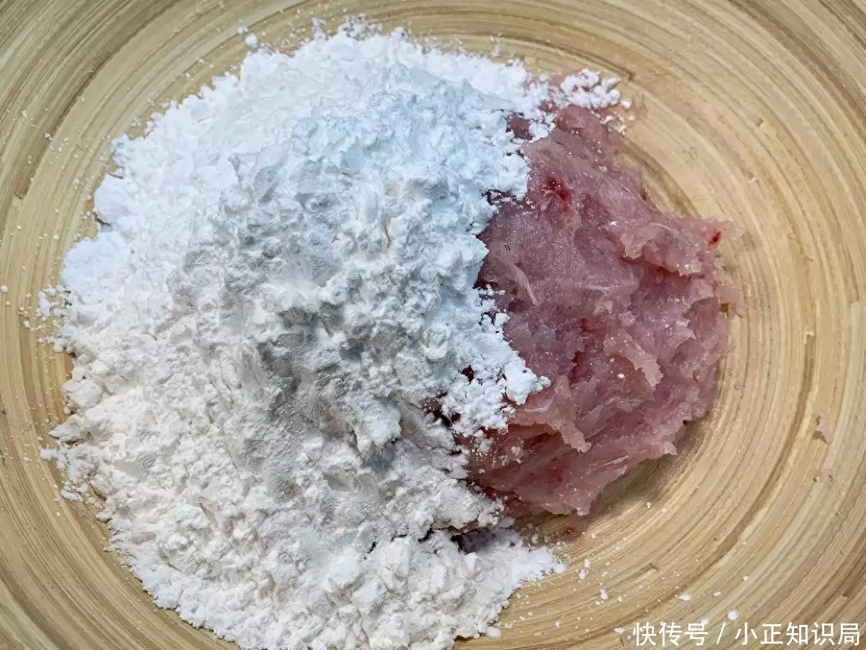 食材:鮸鱼肉2斤,木薯淀粉200克,食盐,鸡精,味精,胡椒粉,小米辣,姜丝,食用碱。
