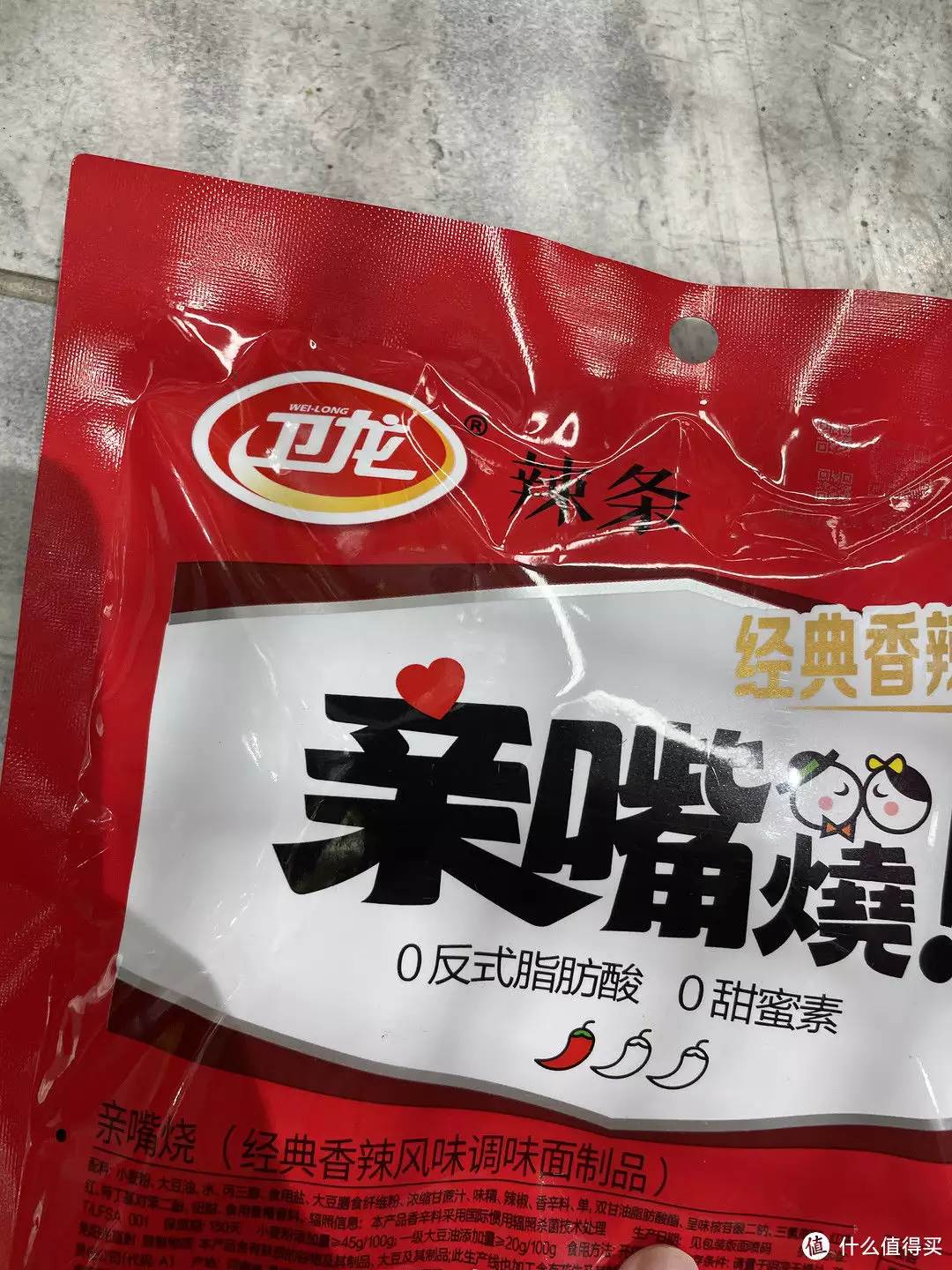 卫龙经典香辣味亲嘴烧作为一款知名的零食,每个星期都会来一点。