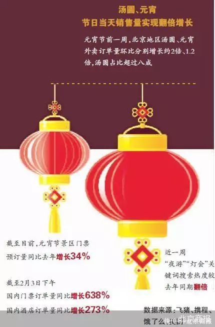 飞猪数据显示,截至目前,元宵节景区门票预订量同比去年增长34%。据携程数据,近一周“夜游”“灯会”关键词搜索热度较去年同期翻倍,截至2月3日下午,周末国内门票订单量同比增长638%,国内酒店订单量同比增长273%。可见,人们出游的热情持续高涨。